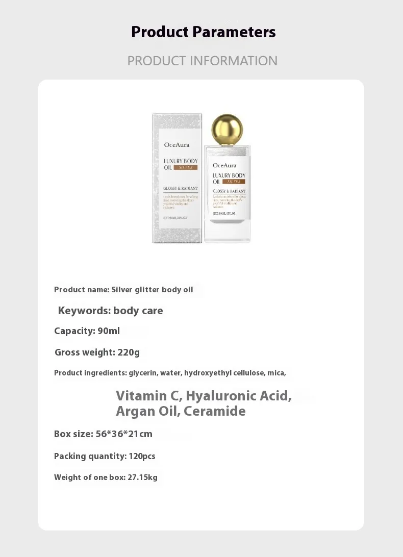 Color classification: Rose glitter body oil * 90ml, silver glitter body oil * 90ml, gold glitter body oil * 90ml